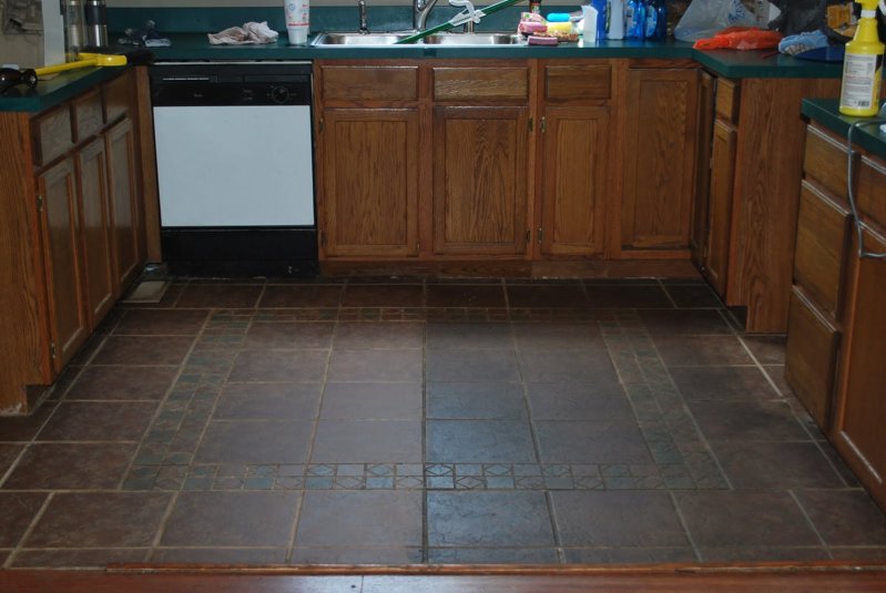 First tried to clean the tile floor. From black became a beautiful Tuscan brick color. But some of the grout was missing. I really loved the floor.