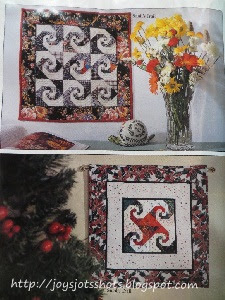 The "Square in Square" block in this book is actually used in the "Storm @ Sea" design which I find fascinating because it seems to have curves in the design when in fact there are only straight lines. "Storm @ Sea" is in the bottom shot in the upper right corner.