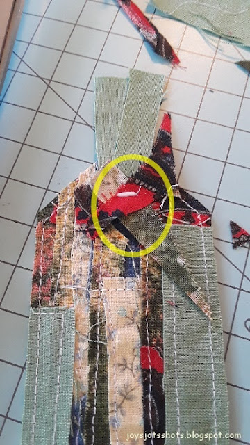 Many of you have heard of and possibly made a Strip Race quilt top or better known as the Jelly Roll Strip Race Quilt. I like to use the same method to use various lengths and widths of strips to make a piece of scrap cloth like I did for this gift bag to present the White on White Pillows to my Grand Daughters.